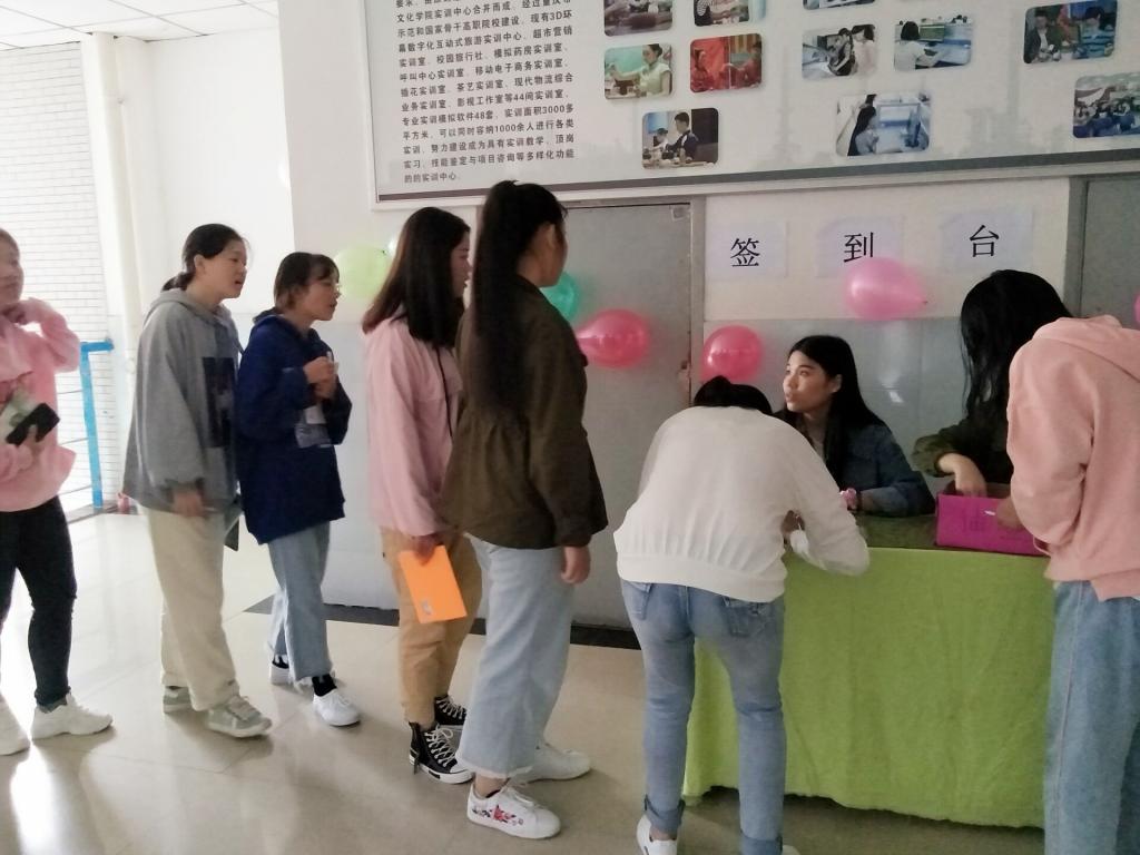 上午九点半,酒店专业的新同学们首先来到A栋(创新楼)三楼平台处进行签到并抽取自己的幸运签,根据幸运签上的提示信息进入酒店实训室,通过寻找解密卡片的形式,让新同学们对专业实训室有一个基本的了解,在团队的协作中增进彼此间的友谊。