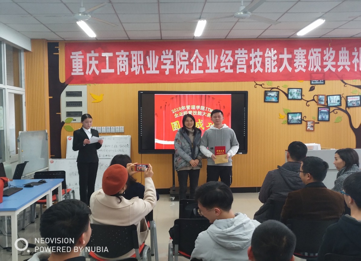 2018年12月5日,迎来了一年一度的企业经营大赛的颁奖典礼,本次到场的老师分别是——杨波院长、易诗莲老师、潘璐老师、刘洋老师、雷达老师、刘冬梅老师、刘念老师。所有荣誉颁给获奖队伍后,本次大赛也落下帷幕。