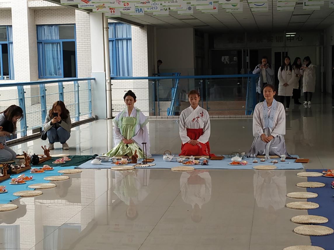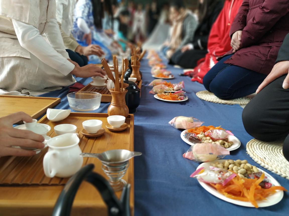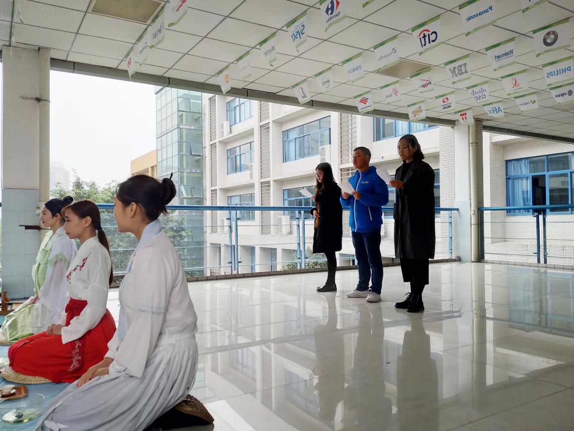 2018年11月21日下午两点,我院酒店管理专业师生在创新楼A306教室外走廊开展以“冬日有约”为主题的无我茶会。本次茶会由思源茶社主办,凤曦汉服社、雅韵诗词社、音逸古典乐器坊协办。