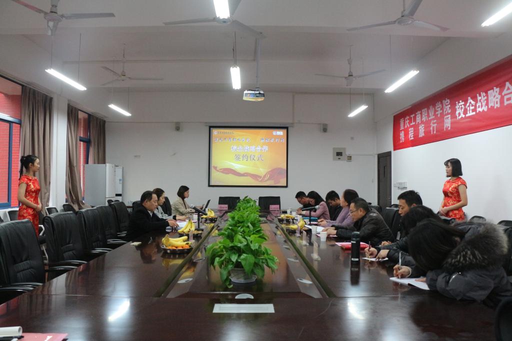 为深入贯彻落实党的十九大关于深化产教融合、校企合作的会议精神,探索工学结合新模式,1219日下午,我校与上海携程国际旅行社有限公司(携程旅行网)举行校企合作签约及授牌仪式。我校校企合作处张宜松处长、管理学院谭蓓院长、杨波副院长和携程西南客服中心董事长赫明辉、人事总监杨家林等出席签约仪式,仪式由旅游酒店管理教研室主任杨华主持。
