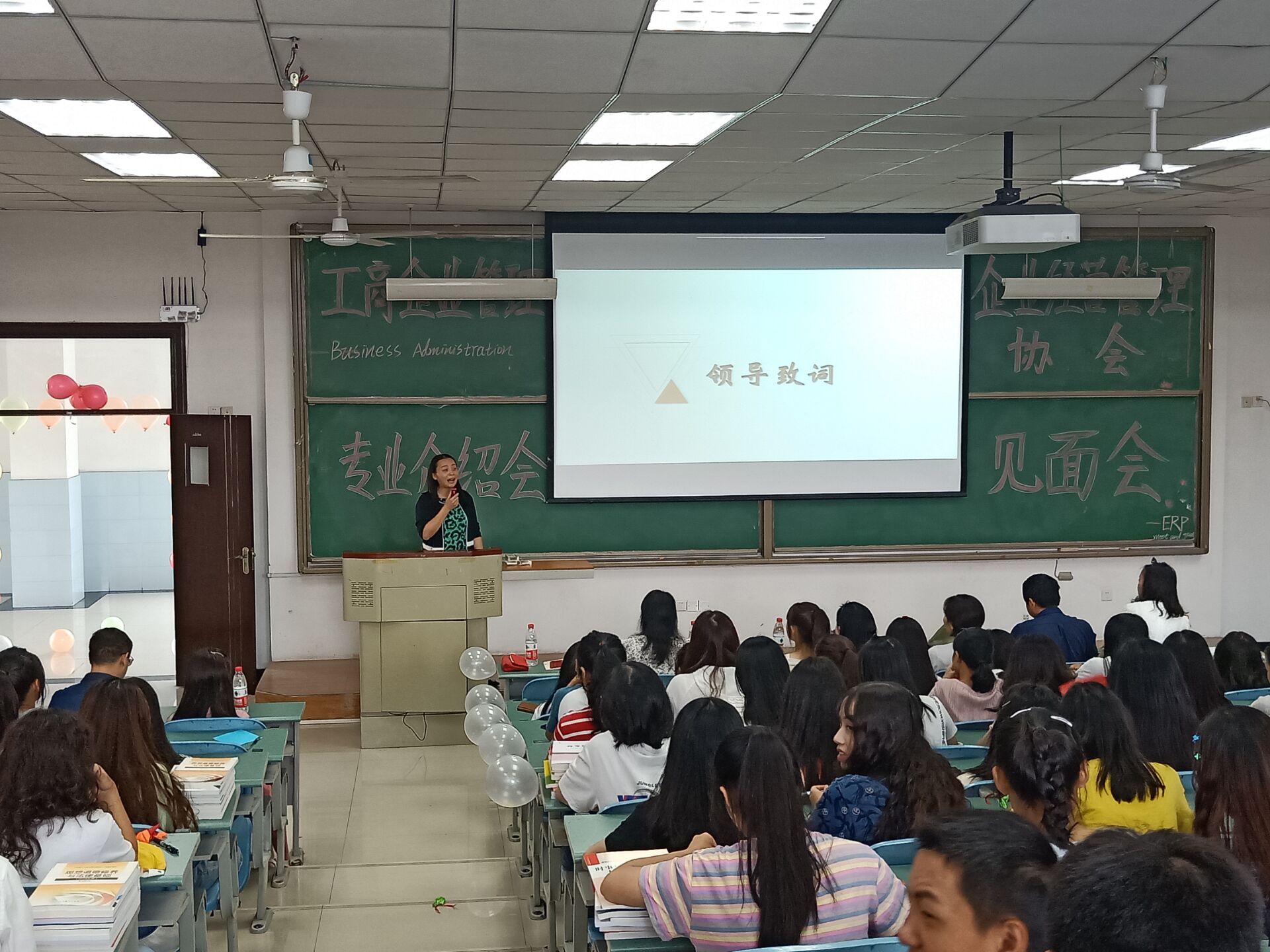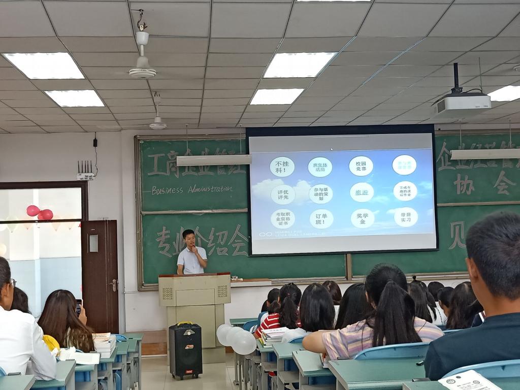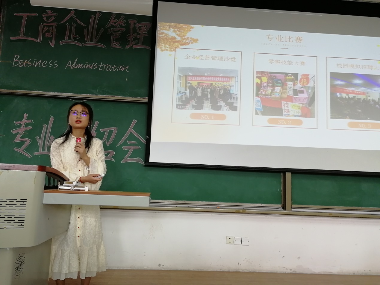 接着,工商企业管理教研室主任易诗莲老师为2019级新生做了细致全面的专业介绍,内容包括工商企业管理专业介绍、专业学习内容、以后的职业去向等,还特别介绍了新生们很关心的专升本情况。
