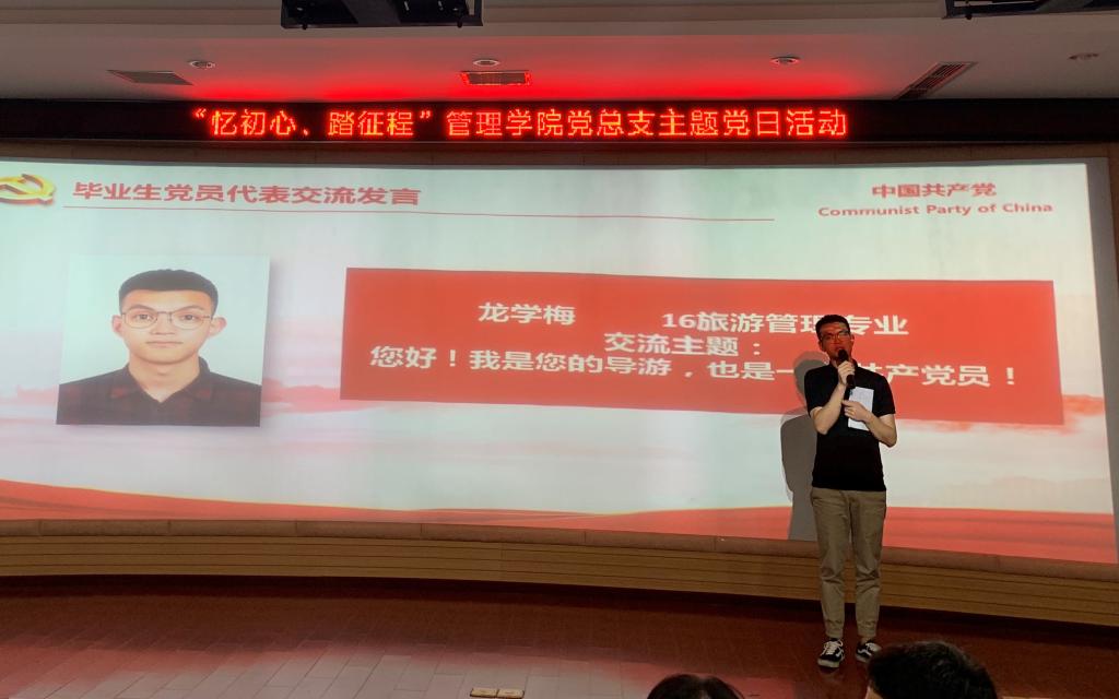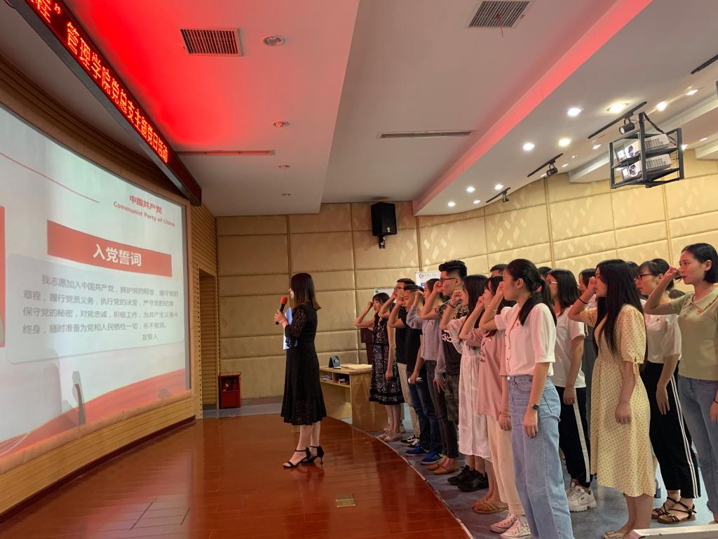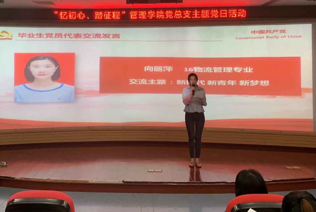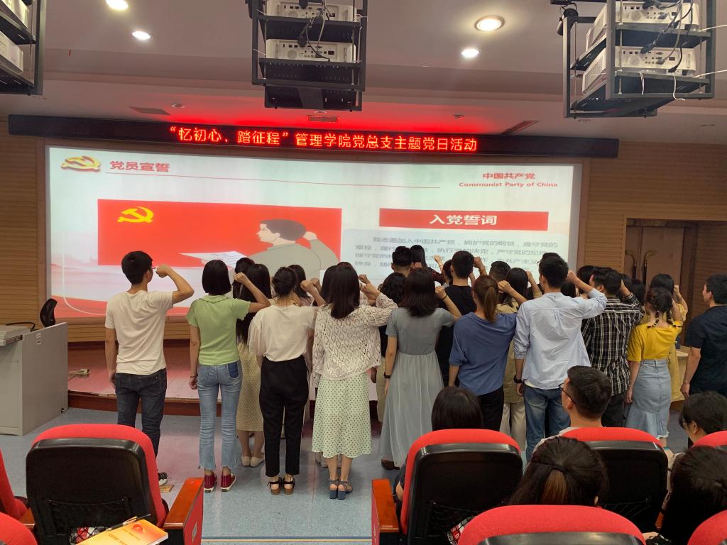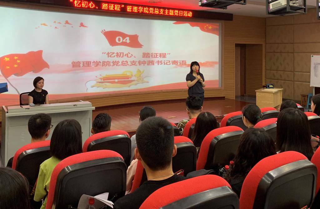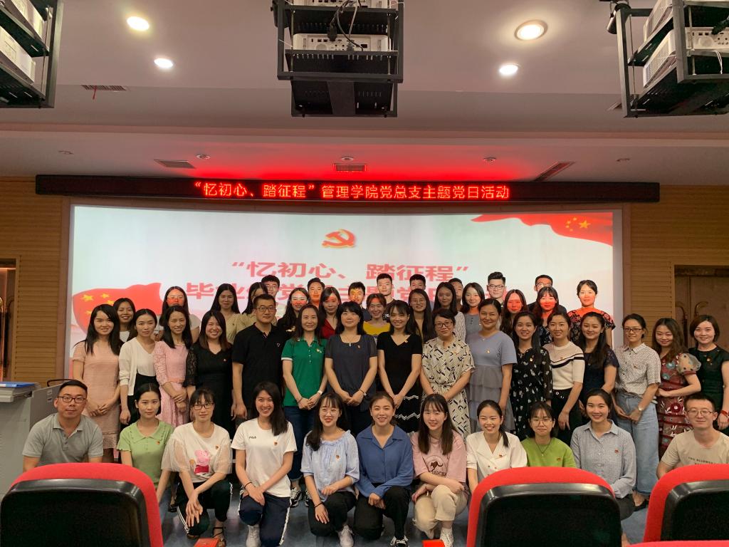 2019年6月19日下午,管理学院党总支在修德楼301教室举行“忆初心、踏征程”管理学院党总支主题党日活动。管理学院党总支书记、学工支部党员教师、2019届毕业生党员及入党介绍人参加本次活动。