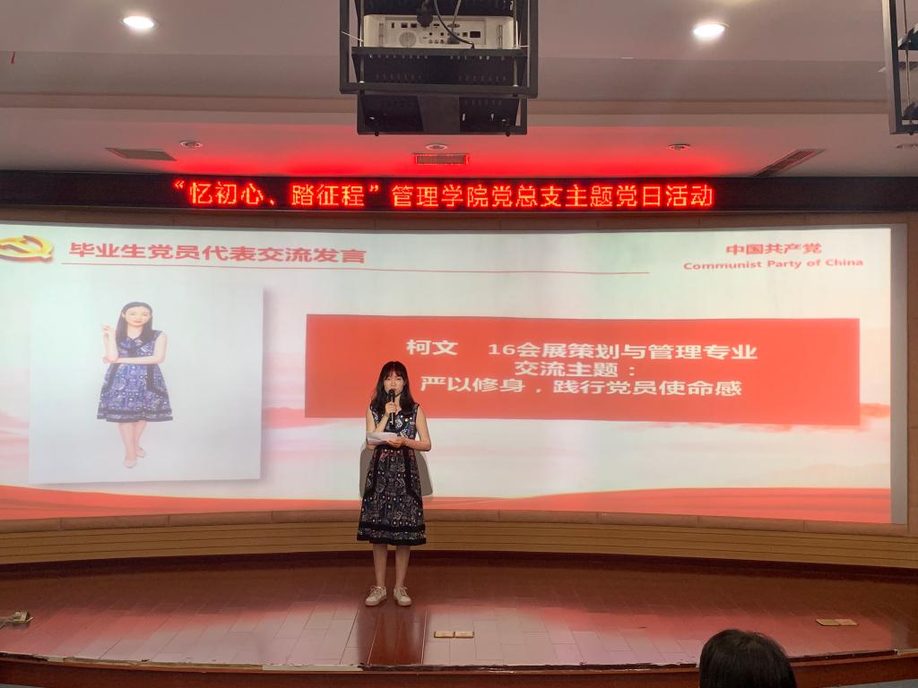 管理学院党总支书记钟茜老师对全体毕业生党员提出三点希望,希望他们坚定理想信念、坚守党员身份、坚持终身学习,并为全体毕业生送上美好的祝福。