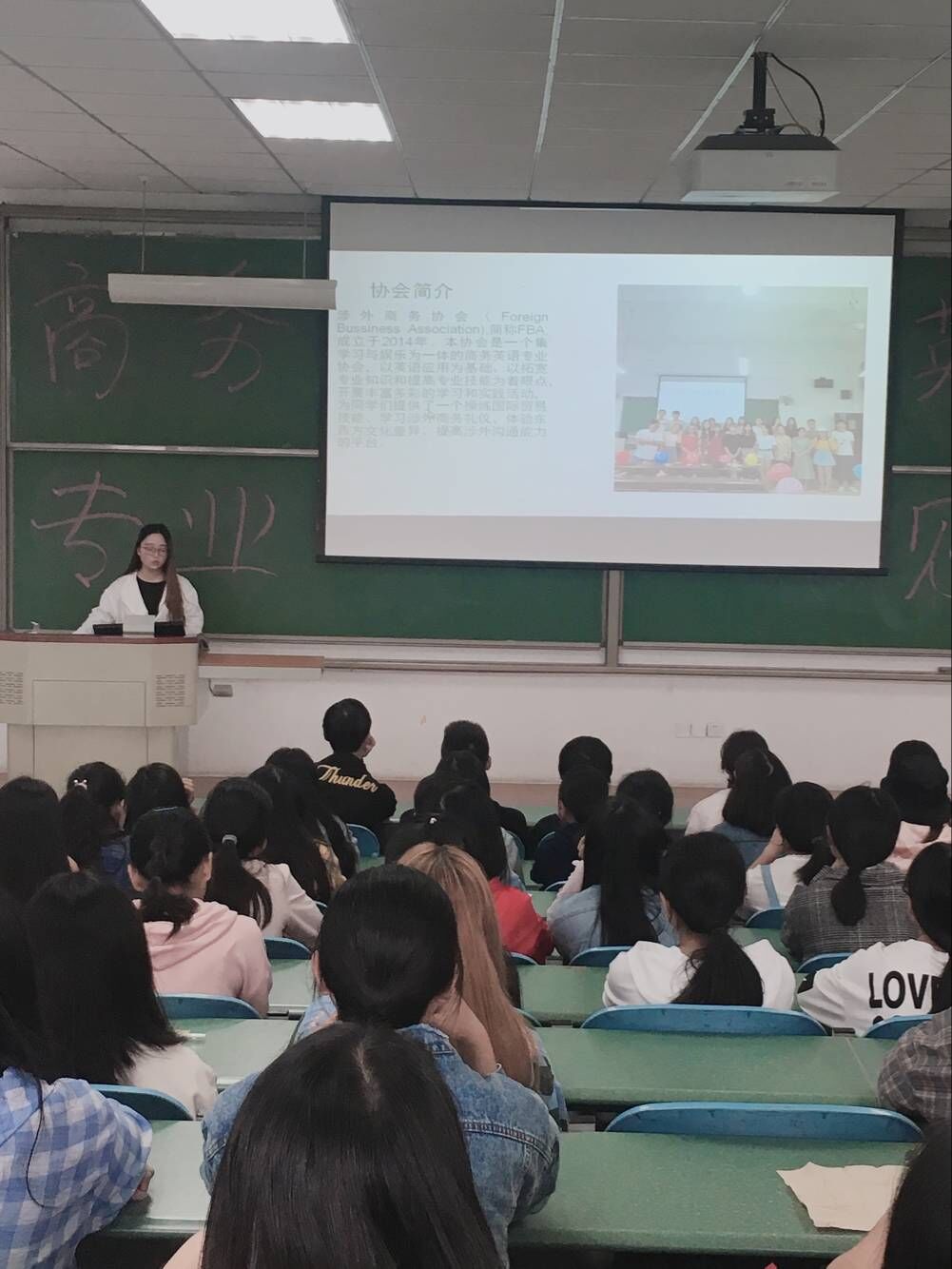 之后,2017级会长陈媛媛向大家介绍了涉外商务协会和协会各部门之间的工作。分享了考取英语四级证书的经验,并欢迎学弟学妹们向她咨询,也欢迎大家加入涉外商务协会。