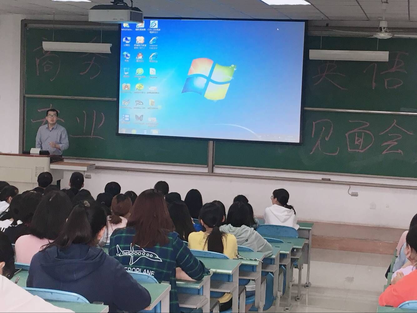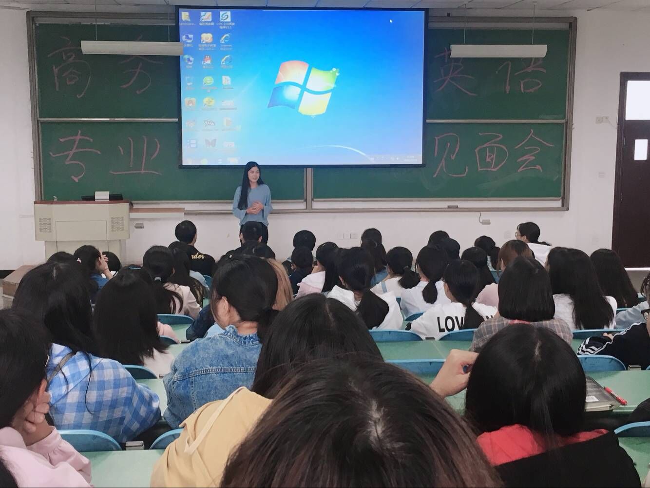 见面会开始,景韵老师隆重介绍了出席见面会的各位老师。随后,涉外商务协会2017级会长陈媛媛、2017级商英周彦涛和陈均为大家演唱了一首《后来》。接着,景老师详细讲解了专业的基本情况,向同学们提出了专业学习上的要求,并播放了2010级商英陈昌宇学长、2011级商英刘彬学姐对学习及工作经验的分享及对学弟学妹祝福的视频。赵老师提出了对同学们的期望,希望同学们能够学好专业知识,考取英语四级和六级证书。教诲同学们不要局限在现有的框架里,要努力找寻机会超越自己。在大学期间要做有意义的事情,充实生活,提升自我。