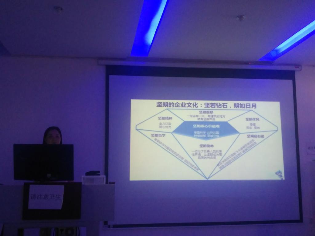 首先在商道方面,谭院长所讲的“商道”,是从忠诚、职业操守、行为习惯出发,用君子爱财,取之有道的典型事例,让同学们理解道德是企业文化的基础,也是健康的企业文化的特征。谭院长带领我们再一次学习了坚朗公司的企业文化,真正理解了它的内涵——坚若钻石,朗如日月,一切为了改善人类的居住环境,让坚朗成为高品质的代名词。
