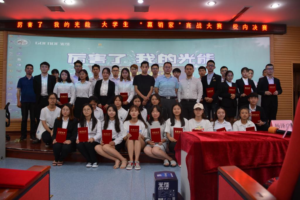 5月30日,由重庆光能饮料有限公司总冠名,重庆良材多网络科技有限公司和管理学院共同主办,市场营销教研室和先锋营销协会承办的2018年管理学院营销技能大练兵活动暨“赢销家”商战大赛校内赛决赛在C栋301室举行。