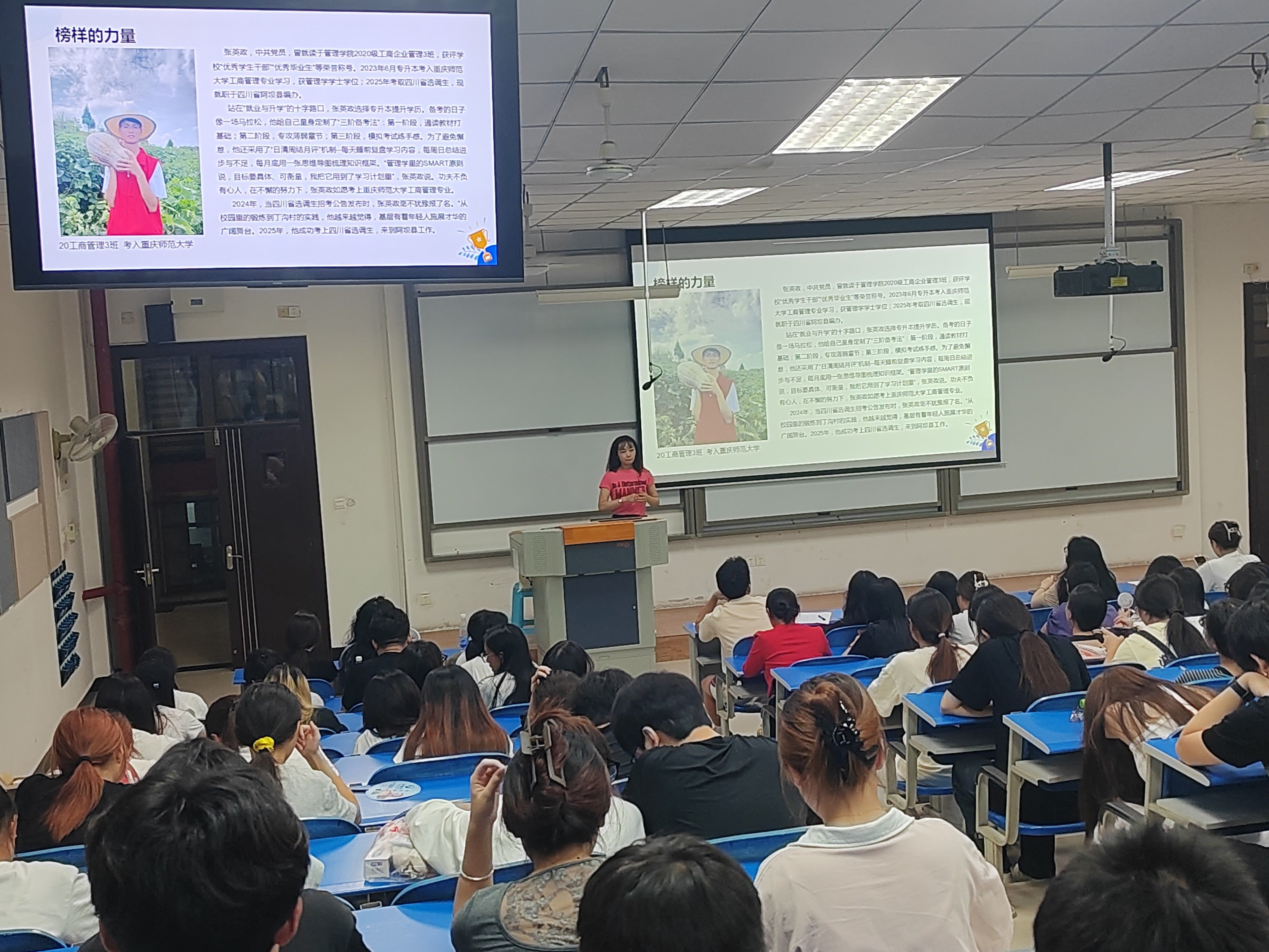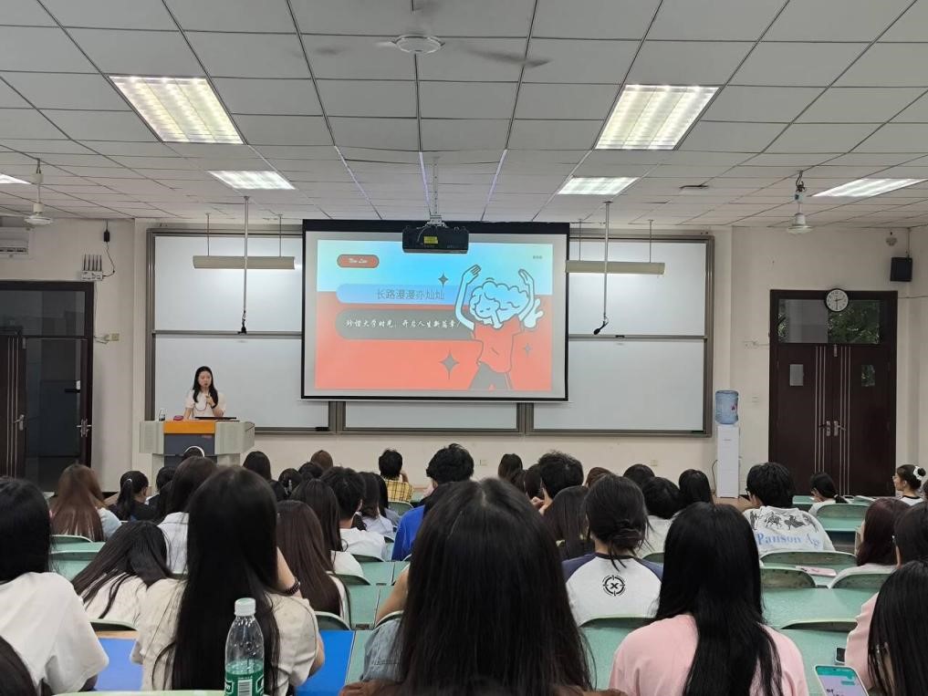 校友引领,树立榜样:谭少柱副院长以“增强定力,深研专业技能”为主题讲授,从产教融合的视角引导学生夯实专业基础,学好专业知识。辅导员老师讲授了选调生张英政、军队文职杨力等优秀校友的求学经历与职业发展之路。结合他们的奋斗故事,引导学生思考如何将所学知识与生涯发展相结合。