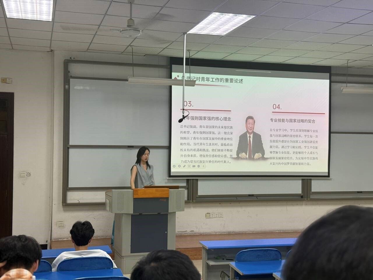 赓续血脉,使命驱动:闫俊霞副书记以“感受荣光,奋进担当”为主题,从中国人民抗日战争暨世界反法西斯战争胜利80周年切入,引导学生传承和弘扬抗战精神,服务国家战略、响应时代召唤,勉励学生赓续红色血脉,立志技能报国,将个人理想融入国家发展伟业,既要刻苦钻研专业知识与技能,成为智慧物流与供应链领域的未来领军力量;也要在实践中锤炼本领,增强服务国家与人民的时代使命感。