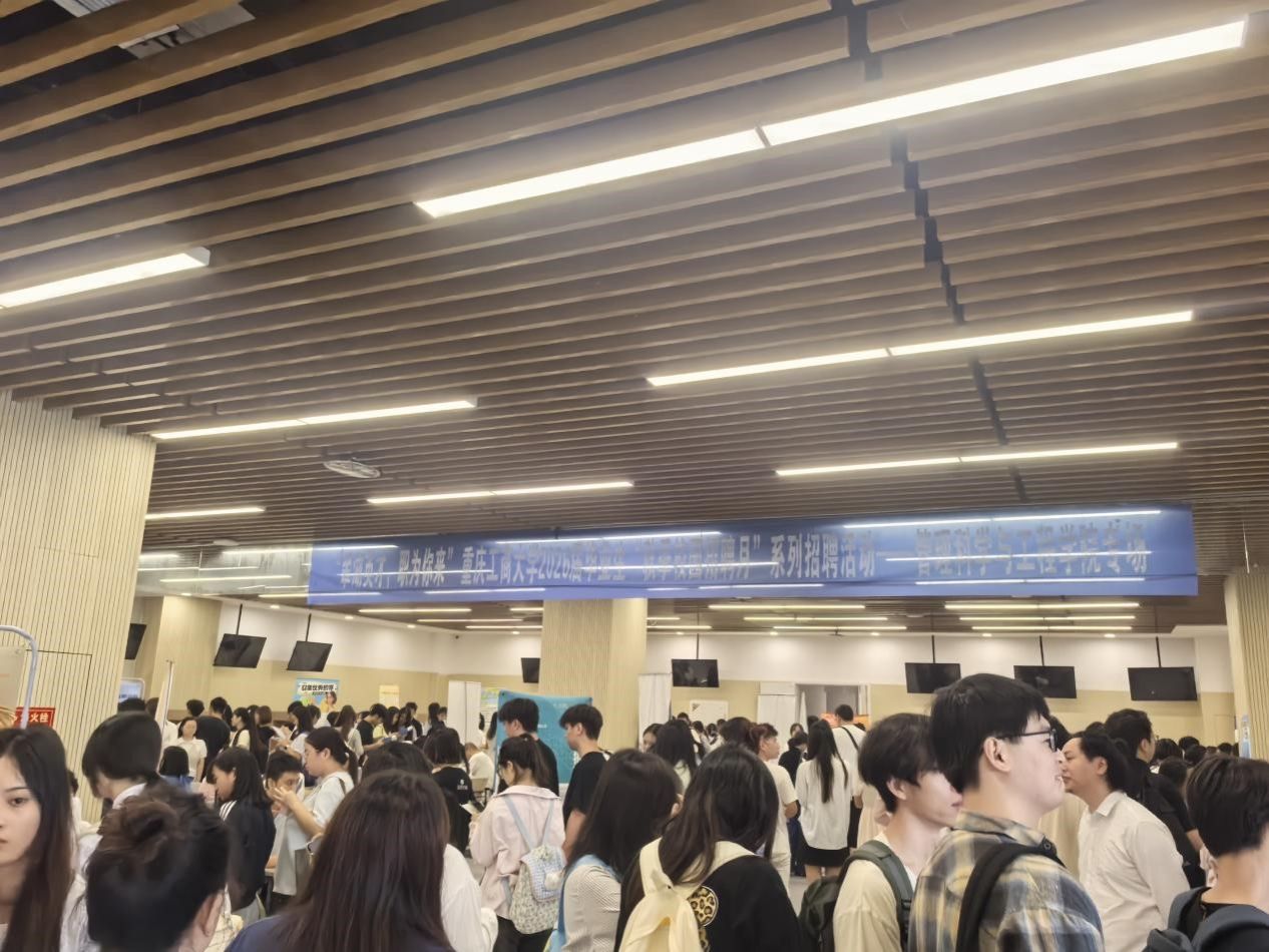 【供稿/杨书萍】近日,我院组织电子商务、工商企业管理等专业44名学生,赴重庆工商大学参加“2025年第二届重庆电商行业校园招聘会”。本次招聘会由重庆市经信委等单位指导、重庆电子商务协会联合主办,我校作为协办单位之一积极参与其中。活动汇聚了顺丰集团、冷酸灵等众多知名企业,提供了涵盖运营、直播、供应链、外贸等多个方向的就业岗位。
