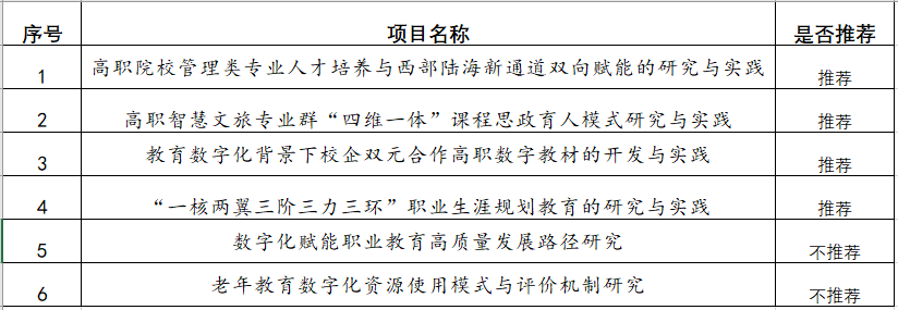 管理学院截止9月4日中午12:00,共收到6项市级教改申报书,经评审组评审,推荐到学校参加评审教改项目4项,现将结果公示如下: