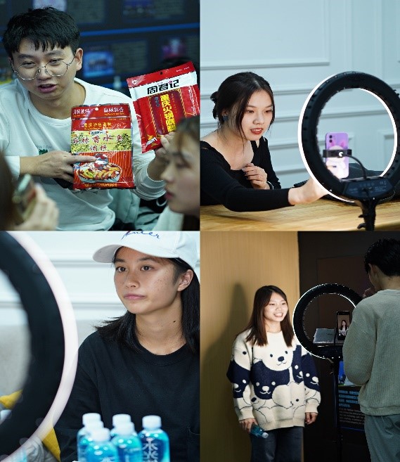 本专业及时把握新媒体和新兴产业发展趋势,采取“服务地方经济、校地企协同、创新创业、岗课赛证”四位融通的培养途径,与阿里巴巴、抖音等国内知名新媒体平台和直播运营企业开展深度合作,引进企业直播精英,以师带徒的模式给予学生更接“地气”的专业指导。通过企业真实岗位实践,为学生提供“理论一实践一理论一实践”不断学习和检验的平台,使学生快速胜任工作岗位,缩短就业零距离。培养同学们的直播营销实战能力,提升短视频拍摄与剪辑水平,依托校企合作项目,锻炼同学们的商业推广短视频拍摄技能,训练直播营销策划能力,提高商品拍摄与处理水平。