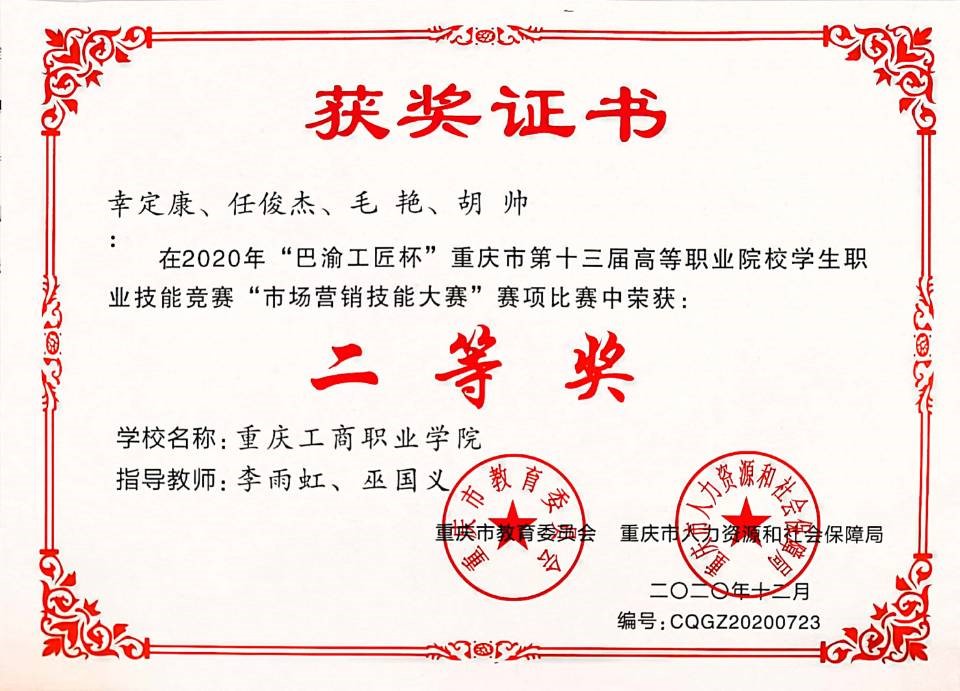 ( 市场营销专业是国家骨干专业、重庆市级示范重点专业 )