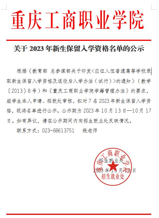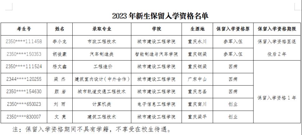 【重要通知】2023年新生保留入学资格名单的公示