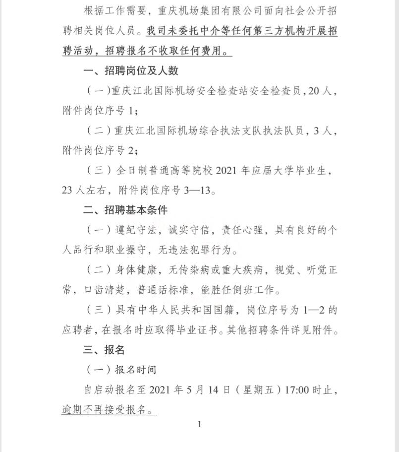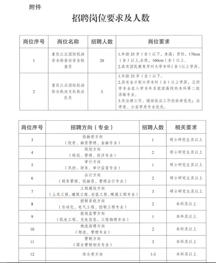 重庆机场集团有限公司招聘简章