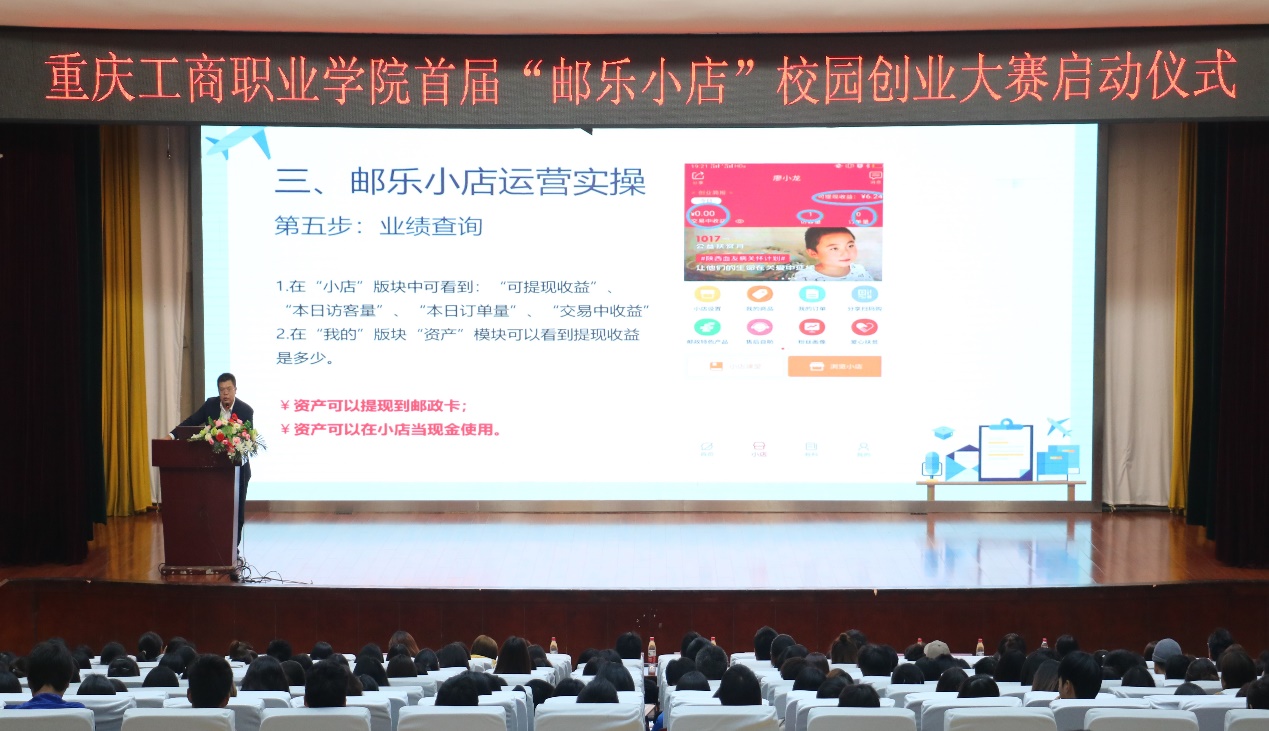 为支持大学生们自主创业,同时培养创新意识、提升创业能力,11月8日下午,由重庆工商职业学院主办,中国邮政集团合川片区分公司与管理学院联合承办的2019年首届“邮乐小店”创业大赛启动仪式在合川校区成功举行。本次大赛既是我校与中国邮政集团校企合作的重要内容,也是我校首次尝试通过创业大赛的形式开展全校性的“第二课堂”活动。