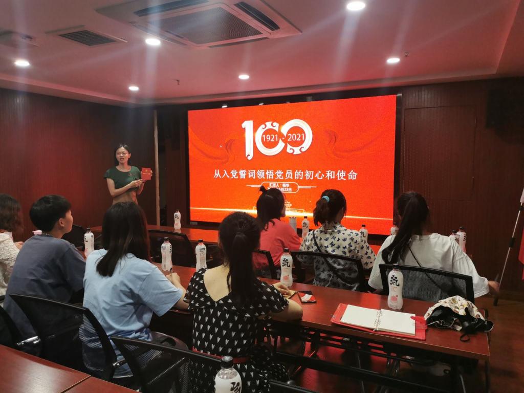 二支部书记杨华以“从入党誓词领悟党员的初心和使命”为主题,从“学习入党誓词永葆入党初心、践行入党誓词牢记忠诚使命、铭记入党誓词夯实忠诚信仰和奋进十四五启航新征程”四个方面,用普通贫苦农民贺页朵的入党宣誓书、重庆白公馆渣滓洞大屠杀开始前富家公子刘国志誓死捍卫党的荣誉、模范医学专家吴孟超的感人事迹为例给二支部所有党员同志上了一堂生动而深刻的专题党课。杨华强调,每个党员都要牢记入党誓词,对照入党誓词,把践行入党誓词当做自己终身的必修课,真正做到“一誓一生”“一诺一生”。