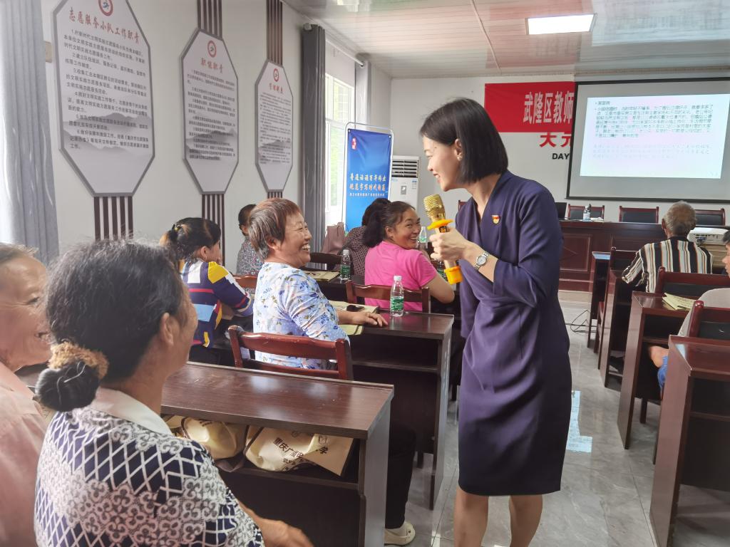 教师党员杨华“以乡风文明之魂,引乡村振兴之路”为题,围绕建设和谐农村、文明乡村,从“门前三包健康你我”等八个方面开展文明礼仪培训,灵活运用视频、案例、漫画等形式,为大元村民们带来一场接地气口语化、通俗易懂、生动形象的乡村旅游文明素养提升课。
