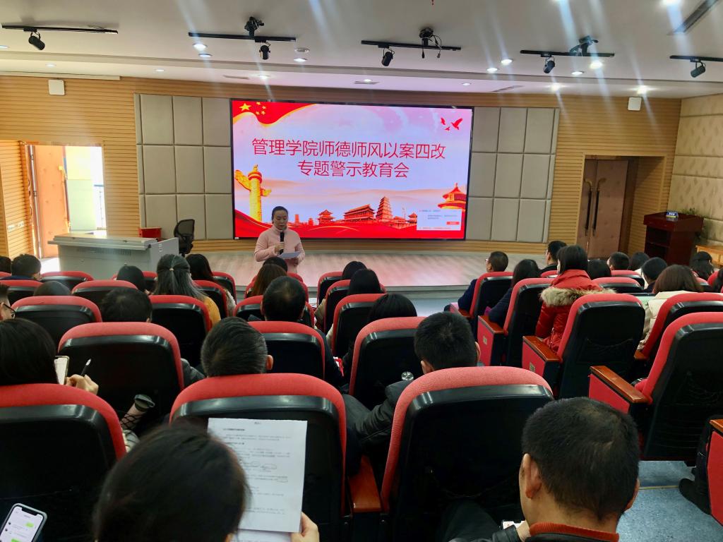 为扎实稳妥推进学院巡视整改工作,深化拓展“以案四说”“以案四改”警示教育,不断推进全面从严治党向纵深发展,12月1日,学院召开师德师风“以案四改”专题警示教育会,用身边事教育身边人,以典型案例当头棒喝。