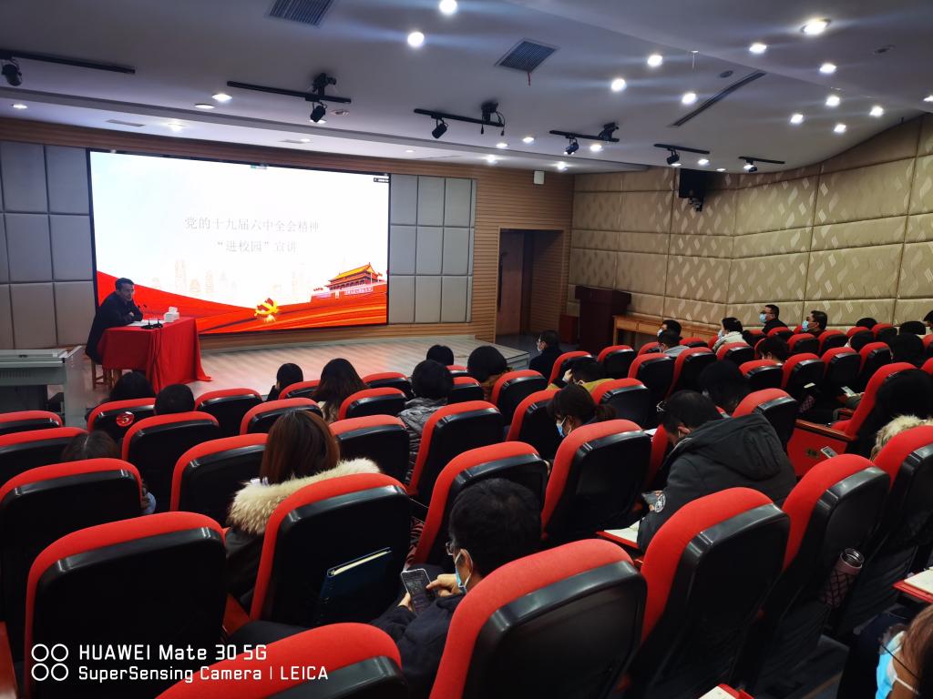 12月29日,学校校长李国在管理学院党总支举行十九届六中全会精神宣讲报告会。李国校长紧紧围绕如何把握党的十九届六中全会作出新的历史决议的重大意义;把握党百年奋斗的初心使命和重大成就;把握中国特色社会主义新时代历史性成就和历史性变革;把握党百年奋斗的历史意义和历史经验和如何走好新的赶考之路等方面进行了系统阐述和深入解读。