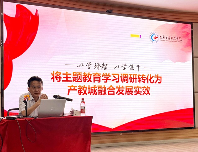 7月4日上午,党委副书记、校长李国在会议室C301给管理学院全体教师党员及学生预备党员讲党课,以《将主题教育学习调研转化为产教城融合发展实效》为主题开展了集中教育学习。管理学院党总支书记钟茜主持会议。