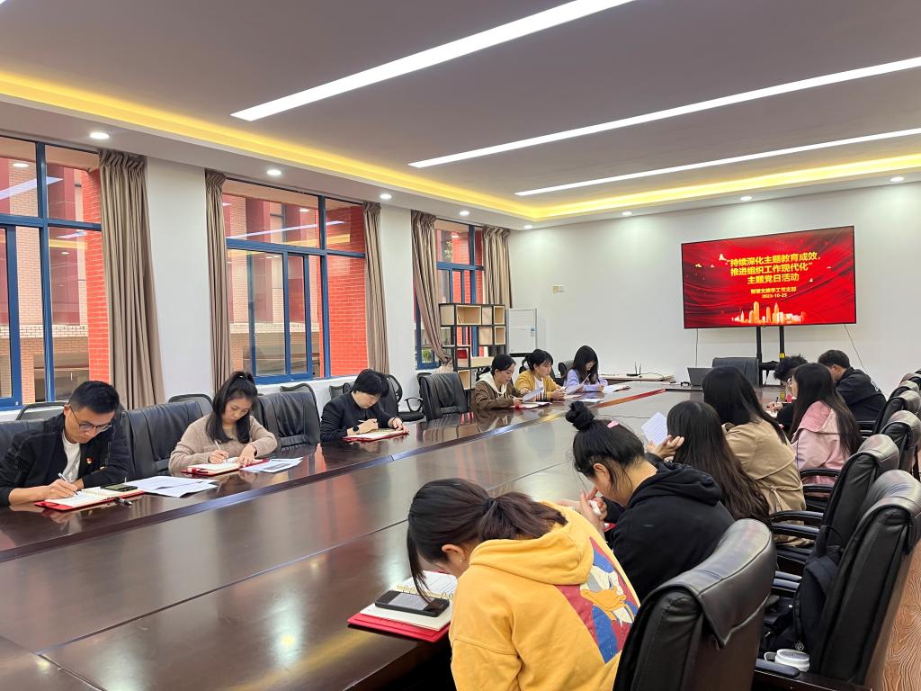 为进一步学习习近平总书记关于党的建设和组织工作重要指示,持续深化主题教育成效。10月25日,智慧文旅学工支部在B230开展“持续深化主题教育成果,为组织工作增添‘青力量’”主题党日活动。
