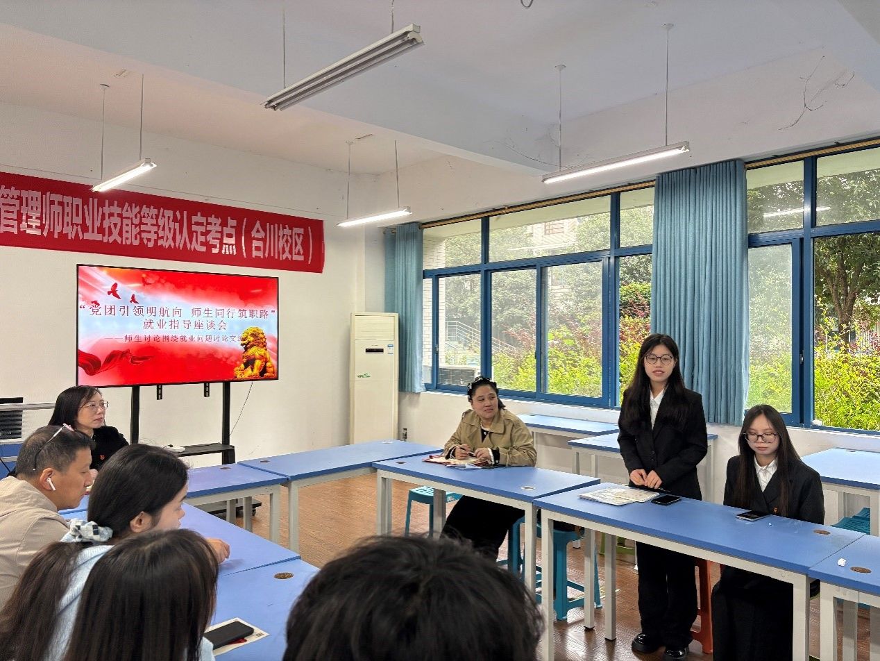随后,在就业指导座谈会上,张君同志详细介绍了学院近期招聘会整体安排。师生围绕职业规划、求职技巧等议题展开深入交流,专业教师与辅导员协同解答学生相关问题。支部书记何跃强调,要坚持以问题为导向,助力毕业生实现“思想破冰、行动破局”,扎实走好职业生涯第一步。