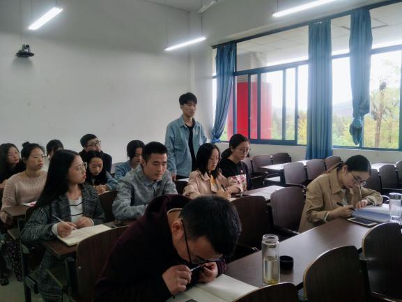 管理学院党总支学工二支部于2019年10月16日开展了“立德树人担使命”主题党日活动。此次活动由支部书记宋文岩老师主持,支部全体党员参加了活动。本次活动以“支部书记领学、支部党员分享学、全体党员共同学”的方式进行。