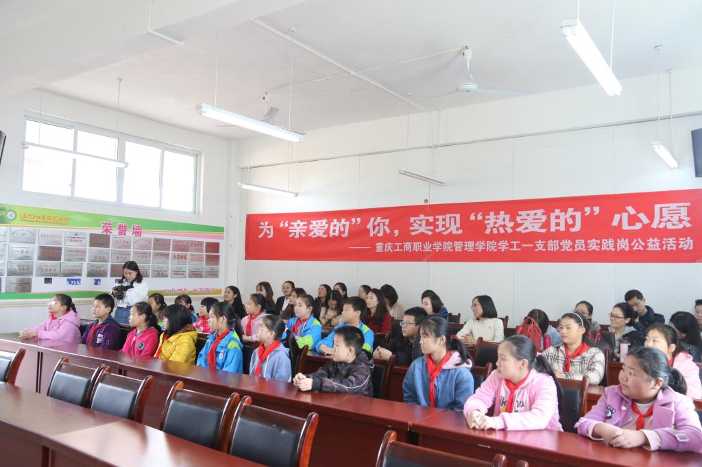 10月30日,由重庆工商职业学院管理学院学工一支部组织的为“亲爱的”你实现“热爱的”愿望学工一支部党员实践岗活动在合川临渡小学成功举办。在“不忘初心,牢记使命”主题教育下,管理学院学工一支部党员师生深刻践行“守初心,就是要牢记全心全意为人民服务的根本宗旨,以坚定的理想信念坚守初心。只有不忘初心才能拼搏奋斗,牢记使命才能方得始终。本次为“亲爱的”你实现“热爱的”愿望学工一支部党员实践岗活动得到了管理学院党总支的大力支持,学工支部、教工支部诸多党员师生纷纷献出自己的爱心。
