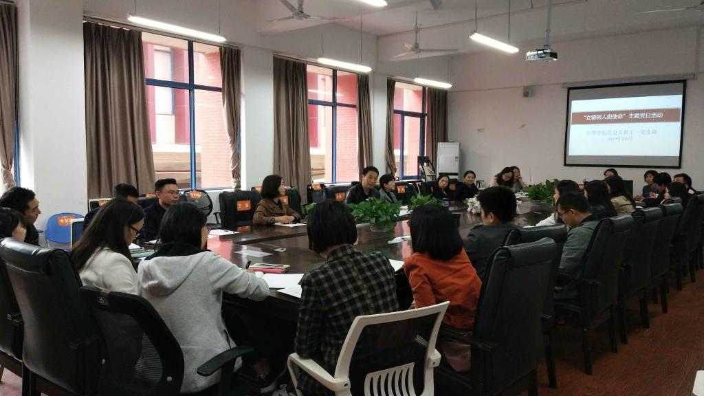 2019年10月23日下午,管理学院党总支教工一党支部在B230召开“立德树人担使命”主题党日活动,教工一党支部全体党员及涉及相关教研室非党员教师参与了本次交流讨论活动,会议由支部书记杨波主持。