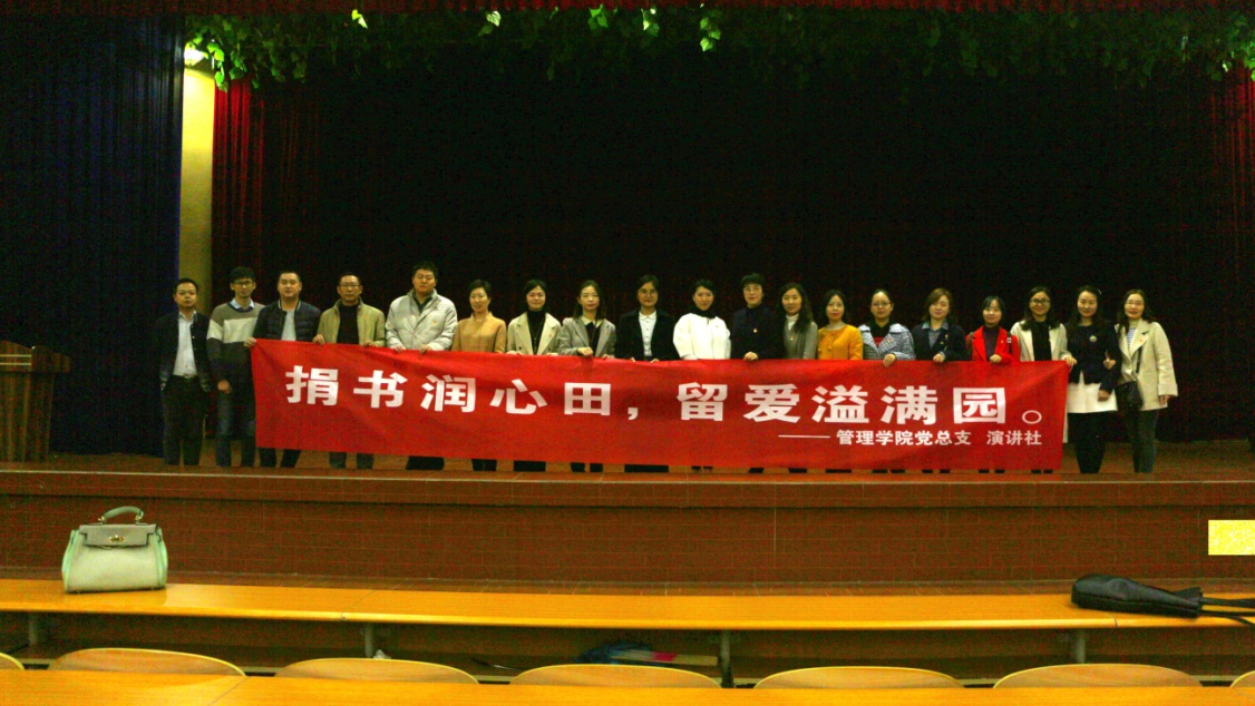2019年11月13日,管理学院党总支20名党员教师代表和演讲社15名志愿者学生走进合川卓尔实验学校,为学校的留守儿童送去400本爱心书籍,并为孩子们带去了内容丰富的大学趣味大讲堂。