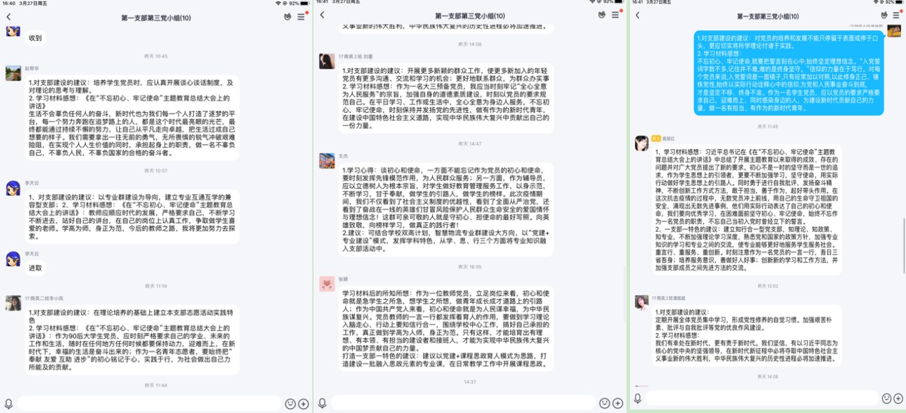 全体党员师生共同学习了习近平总书记在“不忘初心、牢记使命”主题教育总结大会上的讲话以及习近平总书记关于疫情防控工作的系列重要讲话精神。各位党员同志,通过理论学习,积极发言。黄翔院长针对当前疫情防控的局势,提出党员同志必须要有干事创业、担当作为的精气神,积极解决群众最优最盼的问题,努力提高教育教学的质量,培养社会主义事业的接班人。教师代表袁丽红认为作为一名教师党员应严于律己,做好本职工作,要用实际行动做好学生的引路人,真正做到高为人师,身正为范。学生代表谭登鹏认为作为一名学生党员,要始终把“奉献 友爱 互助 进步”的初心铭记于心、实践于行,做一名有担当、有作为的新时代青年。