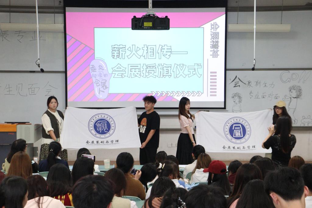 最后,大三两个班的班长将会展专业的会旗授予两个新生班级的班长,象征会展精神的薪火相传。新学期立个FLAG,同学们将对职业和学业的规划写在心愿小卡片上,让时光慢递给未来的自己。师生们在活动现场还进行了寻找未来的会展人的互动并合影留念。