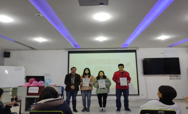 2019年11月27日,企业经营技能大赛颁奖典礼在创新楼310教室圆满举行。工商企业管理教研室的老师们与获奖团队参加了此次颁奖活动。