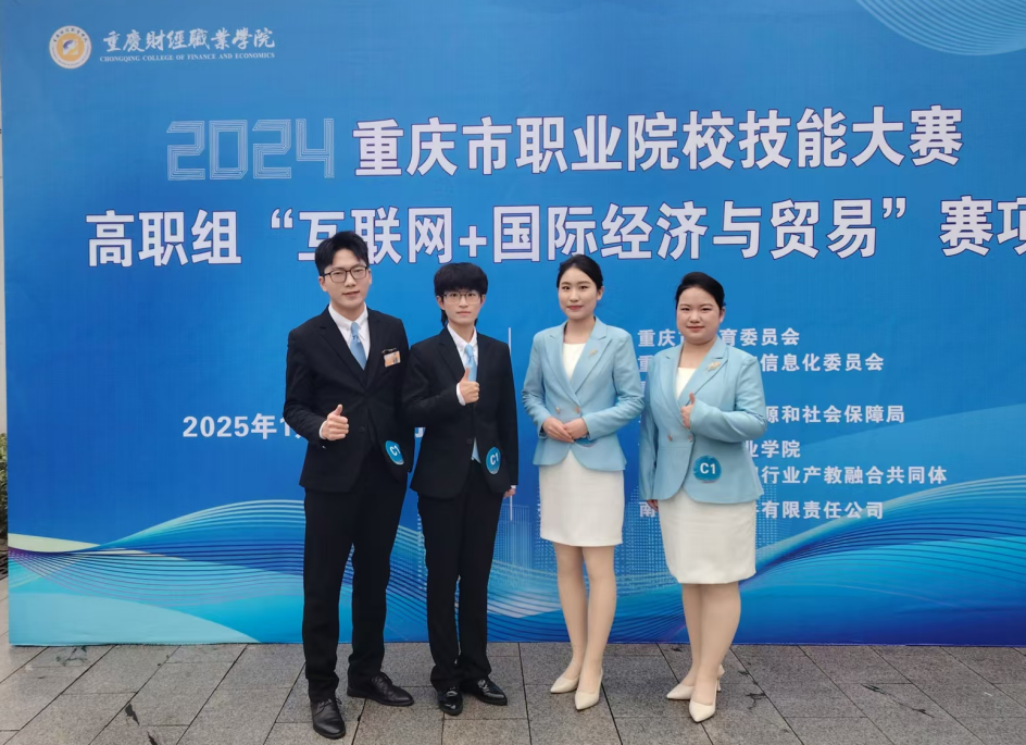 2024年1月9-10日,重庆市职业院校技能大赛互联网+国际经济与贸易赛项在重庆财经职业学院圆满落幕,吸引了来自重庆市内20所高校的36支参赛团队,共计142名优秀学子参与。我院教师冉思丝、宋文岩、彭韵如指导的商务英语专业学生江方林、巫金璇、欧轩玮、任珈莹;宋欣悦、杨烨翰、陈艺彤、李嫒环组成的两支参赛队获银奖。