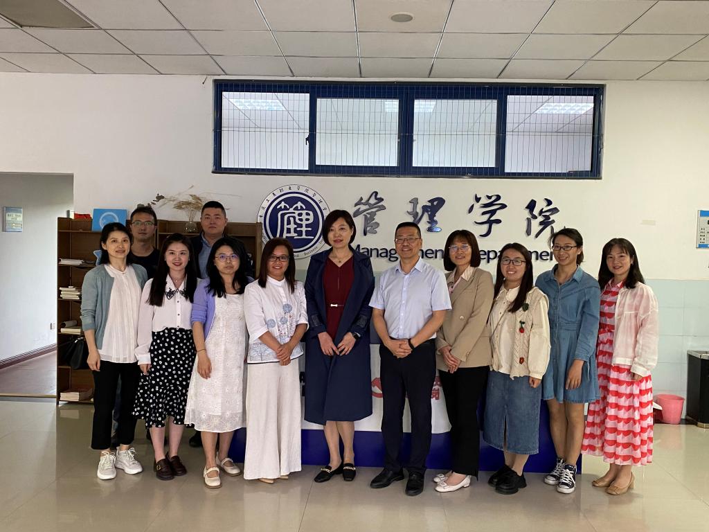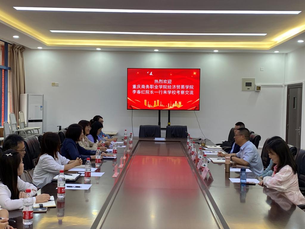 5月8日,重庆商务职业学院经济贸易学院李春红院长、王芳副院长一行到管理学院调研交流。黄翔院长、工商教研室易诗莲主任、商务英语教研室冉思丝主任、市场营销教研室赵凯主任、综管办谭少柱主任参与调研交流座谈。双方就学院发展情况、存在的问题、面临的挑战进行了交流,并就专业定位、人才培养方案设计、校企合作、数字化转型、课堂革命等方面进行了深入探讨。