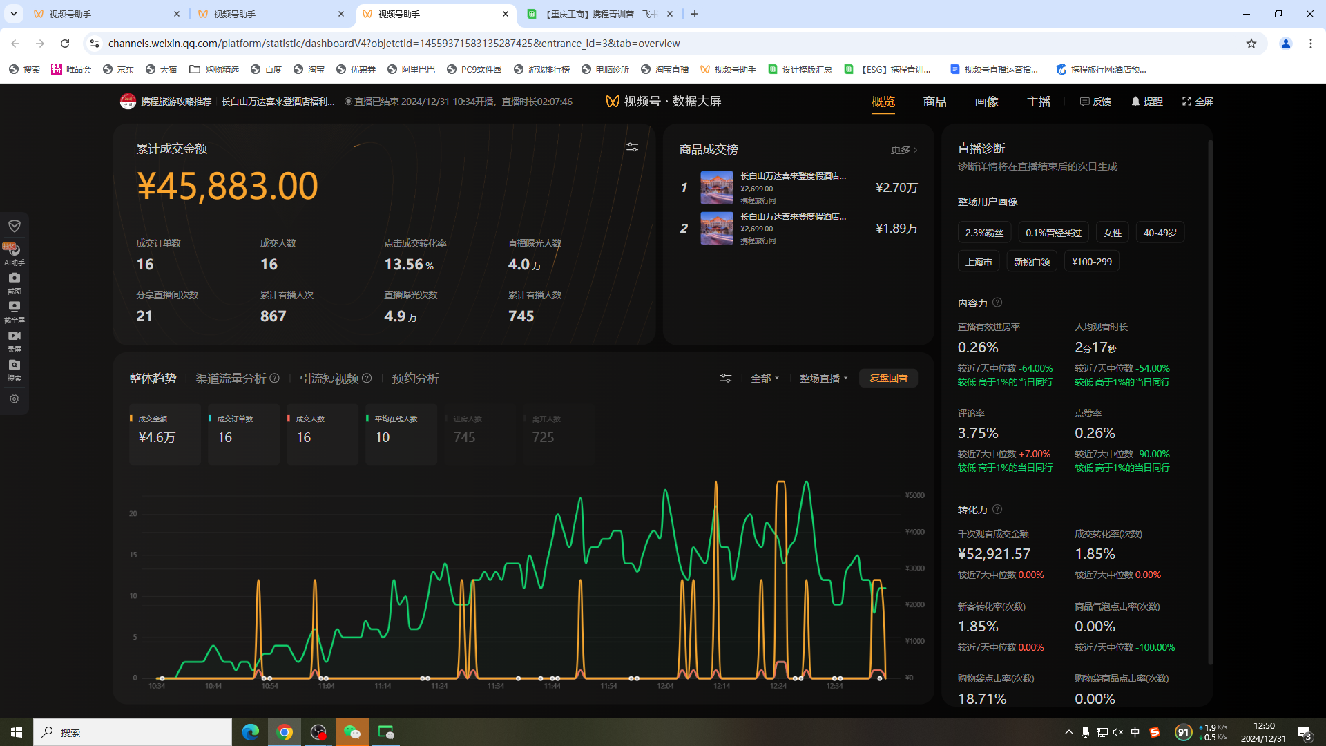 该项目于2024 年 12 月 25 日正式开播,至 2025 年 1 月 6 日圆满结束本学期直播带货实战。期间,有近10 名专业教师参与,企业派遣4 名导师入校指导,10 多名学生投身直播与运营。携程企业提供“携程旅游攻略推荐” 和 “携程环球美景推荐官”官方真实账号。11 天的直播带货中,同学们累计开播48 场,时长近百小时。开播第七天,单日带货金额就突破5万元,总曝光量达 22.02 万次,累计观看人数超过万人。