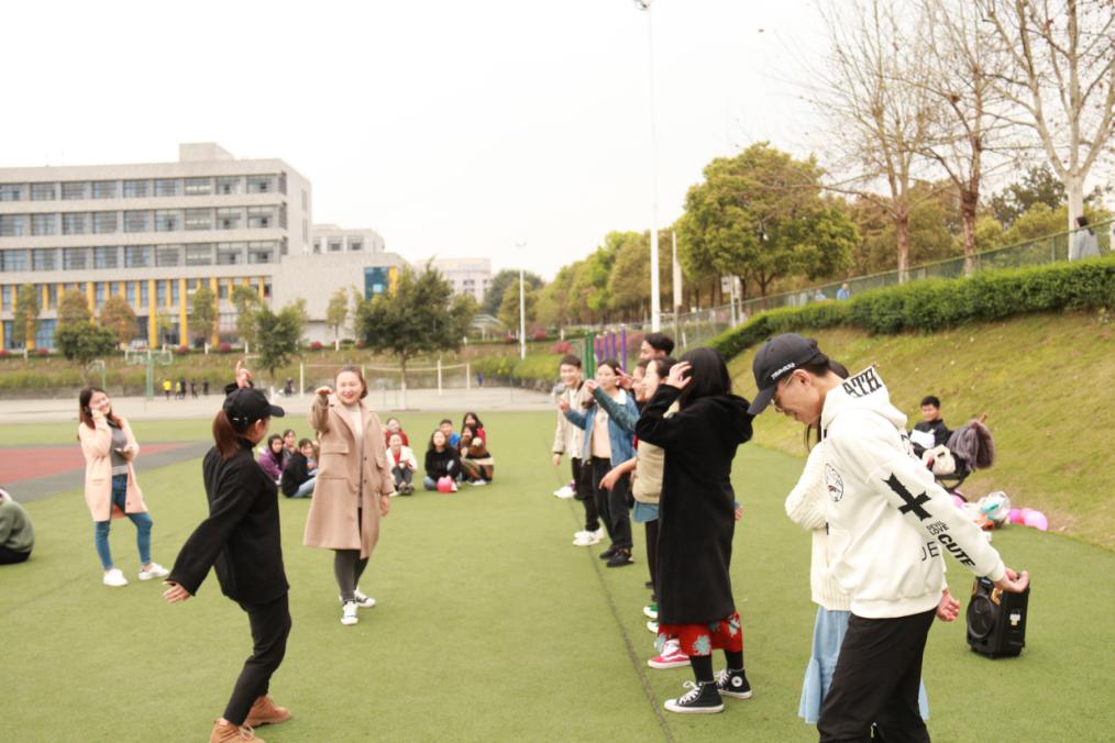 此次活动一共安排了四个环节,有 “传气球”、“双龙戏珠”、“你比我猜”等趣味游戏,也有泰国小伙们喜欢的《学猫叫》舞蹈教学。活动刚开始不久,23名泰国同学我院48名学生志愿者就迅速玩到了一起。院长谭蓓为欢迎泰国小伙伴的到来也到场观看,绿茵场上,同学们挥洒着青春的汗水,大家脸上都洋溢着灿烂的笑容,在阳光的照耀下绘成一幅活力四射的画卷。
