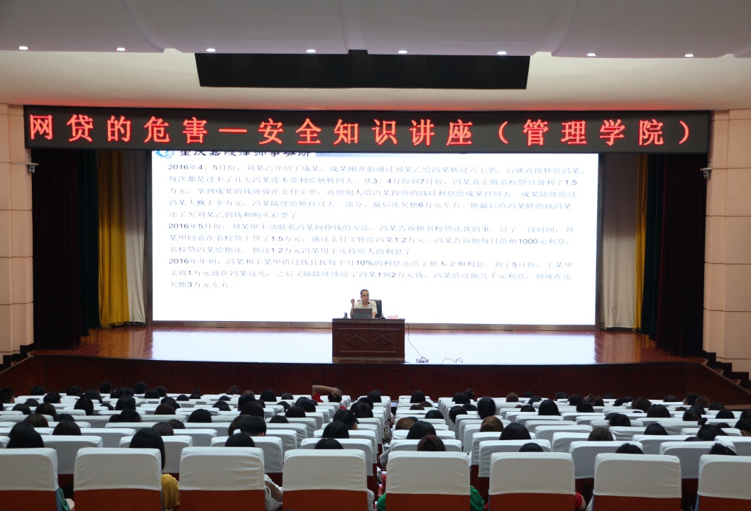 本次安全知识讲座——网贷的危害是学工部牵头,由各学院主办的系列安全知识讲座之一。