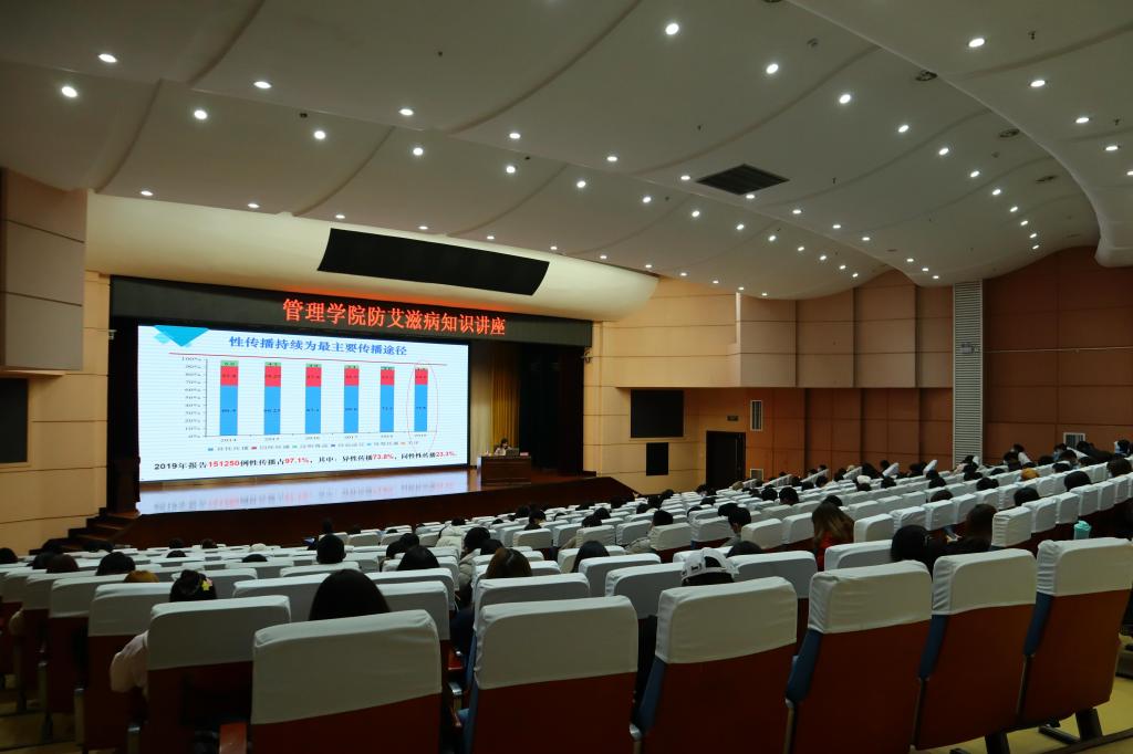 为普及艾滋病防控知识,增强大学生的自我保护意识和抵御艾滋病的能力,倡导健康的大学生活理念,在第33个“世界艾滋病日”来临之际,11月30日下午,管理学院举办了“预防艾滋病健康教育知识讲座”。讲座邀请了重庆市疾病预防控制中心性病艾滋病防治所干预科科长欧阳琳医生,管理学院400余名同学参加了此次讲座。