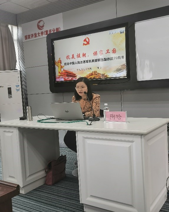 陶晗老师从抗美援朝的出兵决策、过程、伟大意义和抗美援朝精神跨越时空、历久弥新四个方面为同学们做了分享,同时通过大量的图片、视频和档案记录让同学们直观、深刻了解了抗美援朝的历史意义和伟大精神。