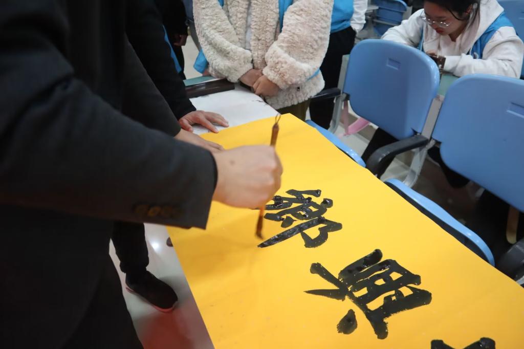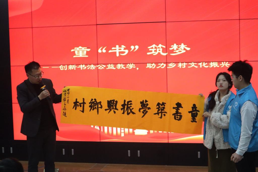 徐志远老师现场书写了“童书筑梦,振兴乡村”的横联,以此勉励青年大学生用心专研优秀传统文化,学以致用,助力乡村文化振兴。