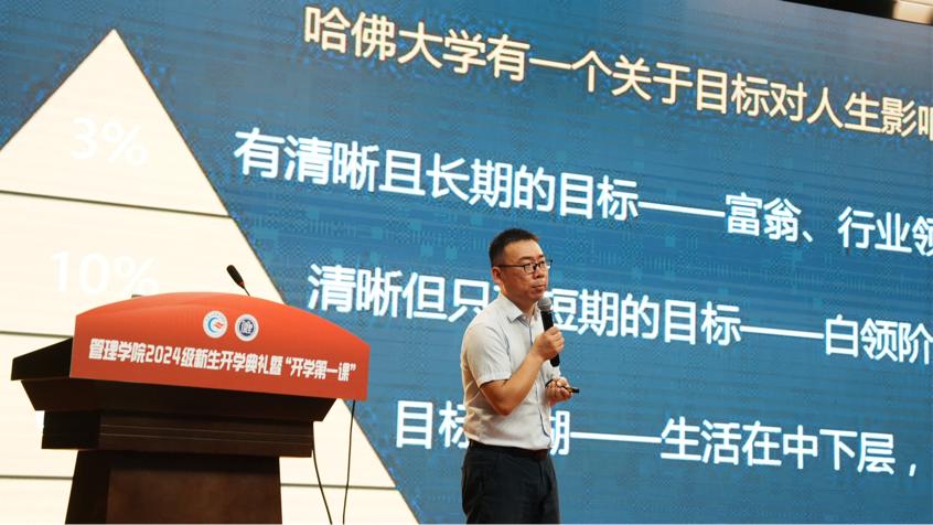 院长黄翔谈到,管理学院坚信每一位同学都拥有无限的潜力和可能,学院鼓励同学们的多样性,尊重每位同学的个性和选择,此外,积极主动的态度是实现个人成长和成功的关键,希望大家努力学习,积极参与实践,在主动规划、主动探索中不断获得进步。最后,他祝愿同学们在管理学院度过一段充实无悔的求学岁月,与学院共同创造一个更加美好的未来。