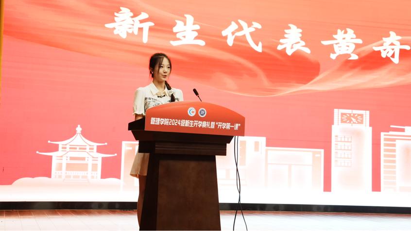 在开学第一课的热烈氛围中,典礼圆满落幕。新生代表黄奇文表示,在新的学期里,她将以更加昂扬的斗志、更加坚定的信念,投入到学习生活之中,为梦想而努力,为未来而奋斗。