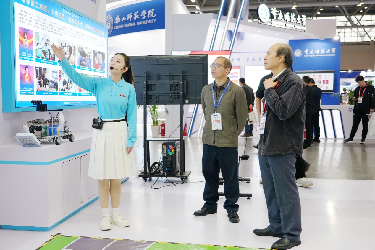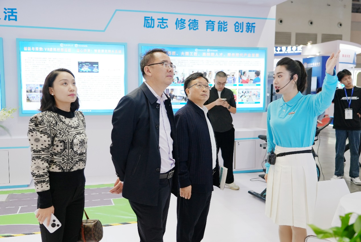 在第62届中国高等教育博览会(简称“高博会”)于11月15~17日在重庆国际展览中心举行。学院讲解队新秀王星、霍淼同学担任重庆开放大学 重庆工商职业学院展区的讲解员,为中国高等教育学会、重庆职业教育学会、山东开放大学等单位的领导与嘉宾,以及来自各地的观众提供了精彩的讲解服务。她们凭借精湛的讲解技巧、热情的服务态度和认真的职业精神,赢得了广泛赞誉。