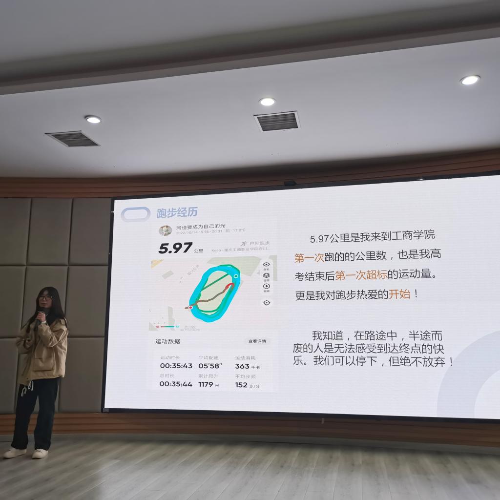 本次酷跑故事演讲比赛共有18名同学进行了现场分享,有的同学觉得跑完步心情更加舒畅了,有的体会到跑步让身体更加强健了,也有的同学对跑步的热情更加高涨了。